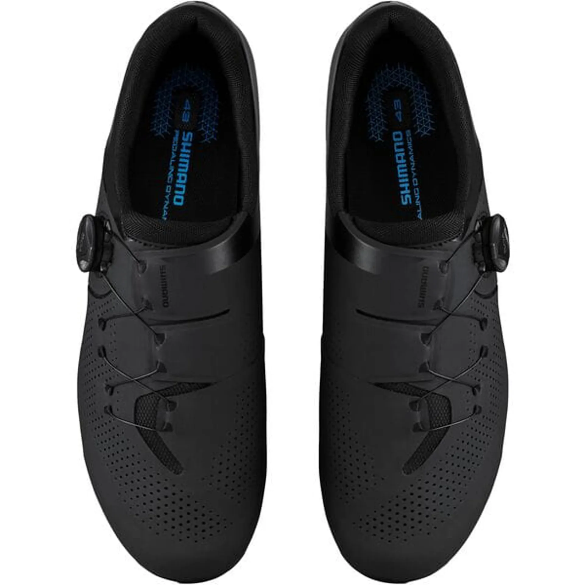 Shimano RC3 Road Cycling Shoes designed for performance road riding, featuring a BOA® L6 dial for quick, precise fit adjustment, a breathable perforated synthetic upper, and a lightweight fiberglass-reinforced nylon sole for efficient power transfer and comfort on longer ride